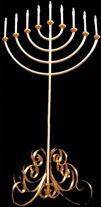 "O Senhor disse a Moisés: Farás um candelabro de ouro puro, e o farás de ouro batido, com o seu pedestal e sua haste ...seis braços sairão dos seus lados,três de um lado e três do outro ...Estes braços formarão um todo com o candelabro, tudo formando uma só peça de ouro batido ...Cuida para que se execute este trabalho segundo o modelo que te mostrei no monte".